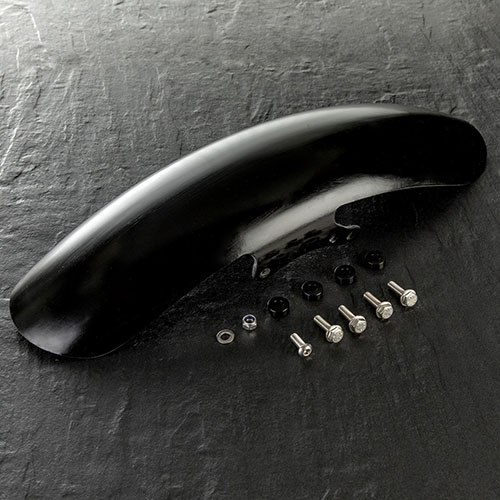 – gekürzter, unlackierter Vorderrad Kotflügel aus GFK, schwarz eingefärbt inkl. Montagematerial